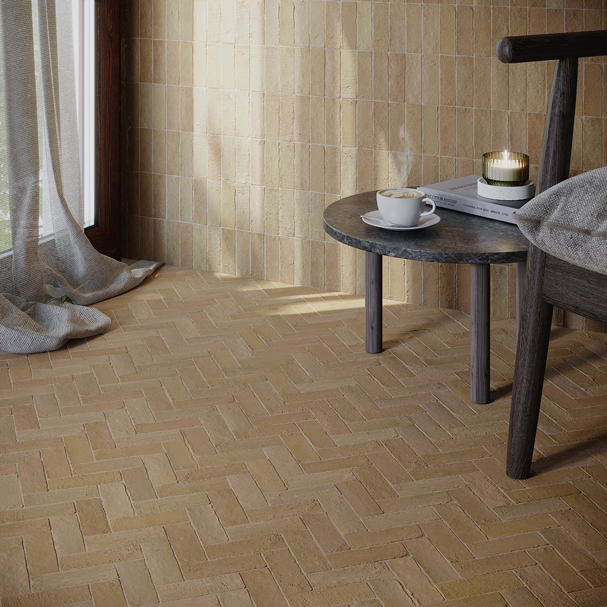 Available in three earth-inspired shades — Red Claystone, Ocher, and Warm Graphite — Earth gives a lived-in, natural aesthetic that feels like it has history. No two pieces are perfectly alike, and that’s the point. The lightly textured matte surface and non-rectified edges add character and variety to every surface.