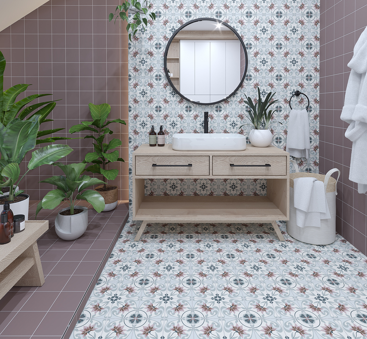 La collection Highbury nous transporte dans l’ambiance de jardins luxuriants tout droit sortis de la série Bridgerton. Elle fusionne l’élégance des tuiles grécoromaines et le charme des motifs hydrauliques, dans un format compact et une finition mate. Chaque tuile en porcelaine offre une touche vintage tout en s’harmonisant avec des intérieurs contemporains. Les couleurs douces et les motifs minutieux permettent de composer un décor zen et raffiné, parfait pour les murs comme pour les planchers.